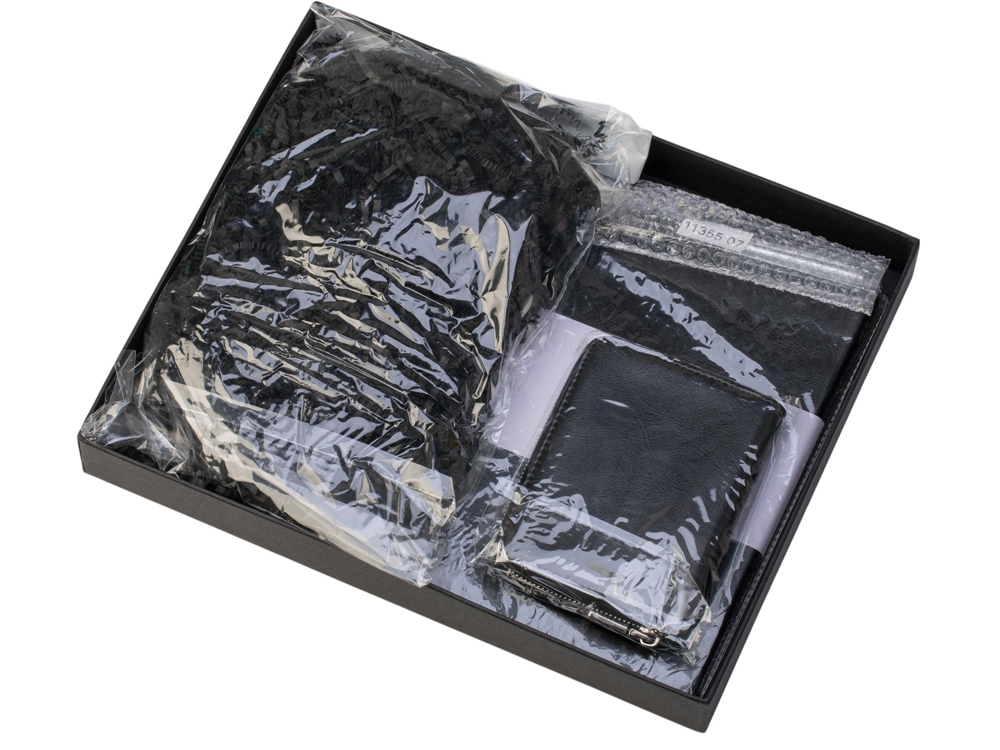 Комплектность: блокнот А5 14,5 х 20,7 х 1,1 см, ручка d1 х 13,8 см, картхолдер 9 х 11,8 х 1,5 см