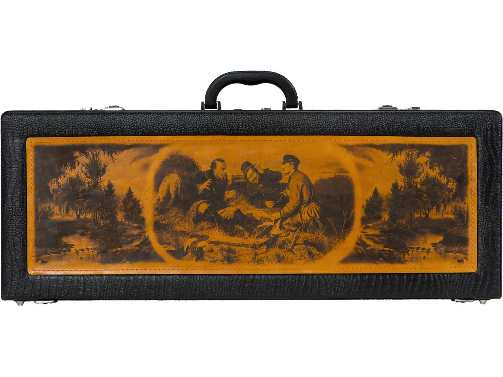 Кейс из сплит-кожи, с повышенной износостойкостью, с картиной, внутренняя отделка натуральная кожа с художественным выжиганием.