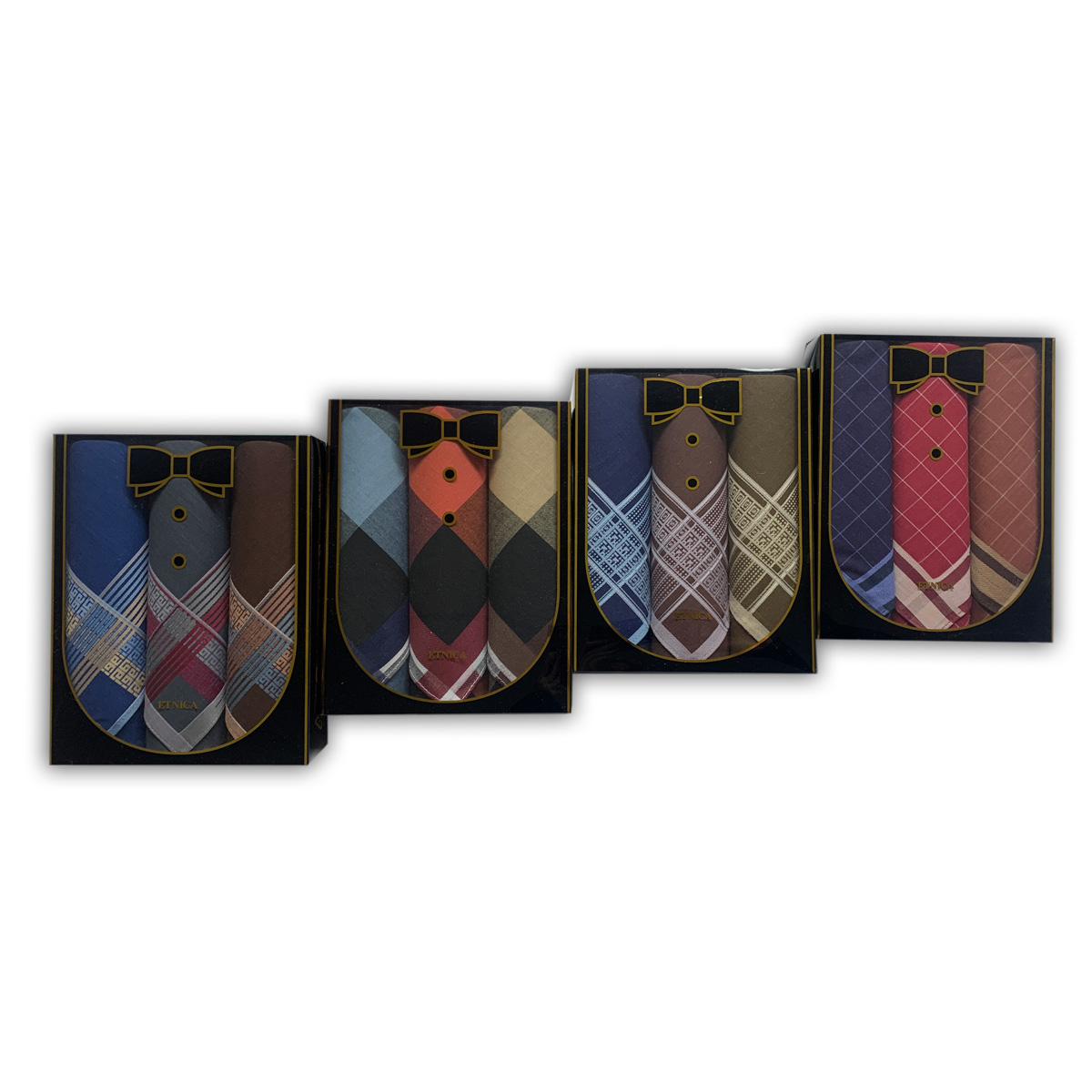 Подарочный набор жаккардовых носовых платков из экологически чистого 100% хлопка. В наборе 3 платка размером 40х40 см. Отгружаются в ассортименте.