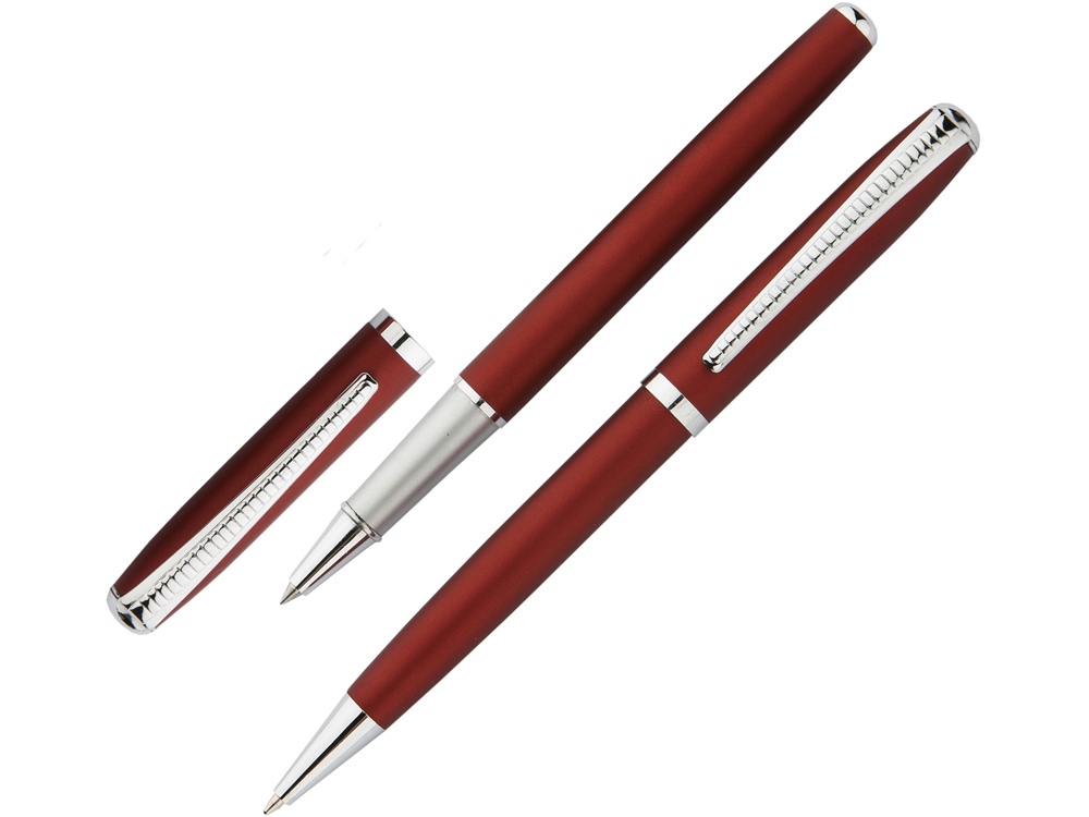 Стильный подарочный набор в фирменной коробке. Шариковая ручка с поворотным механизмом и ручка-роллер со съемным колпачком. Единый дизайн, оригинальное оформление. На металлический корпус обеих ручек можно нанести индивидуальную гравировку.