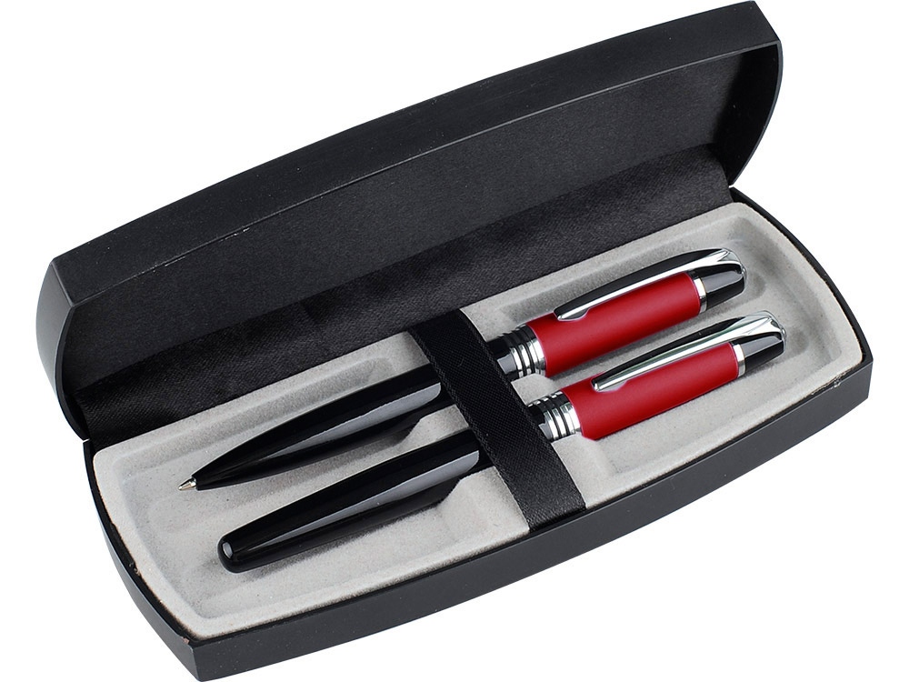 Стильный деловой набор в лаконичном черном футляре – идеальный по своей практичности сувенир. В набор входит шариковая ручка с поворотным механизмом и ручка-роллер с колпачком. И на ручки, и на футляр можно наносить изображение.