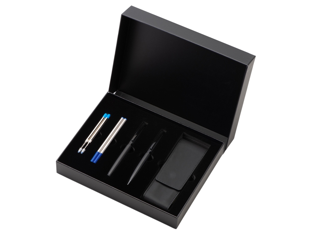 Комплектность: ручка шариковая, ручка роллер, стержень шариковый- 2шт, стержень роллер- 2шт, футляр