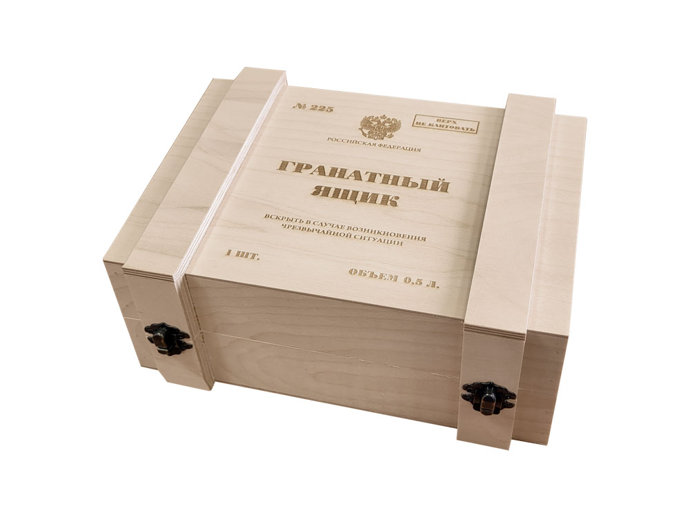 День Победы - один из самых важных и памятных государственных праздников в нашей стране. В этот знаковый для России день принято дарить памятные сувениры. Подарочный набор День Победы - это великолепный подарок на 9 мая, который запомнится надолго. В оригинальном деревянном гранатном ящике находятся керамические боеприпасы: штоф в виде гранаты и три стопки.