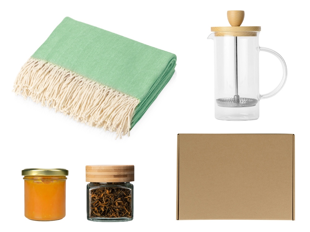 Подарочный набор с пледом, френчпрессом, чаем и вареньем можно заказать в нашей компании по самой доступной цене от 4 070.39 рублей.
