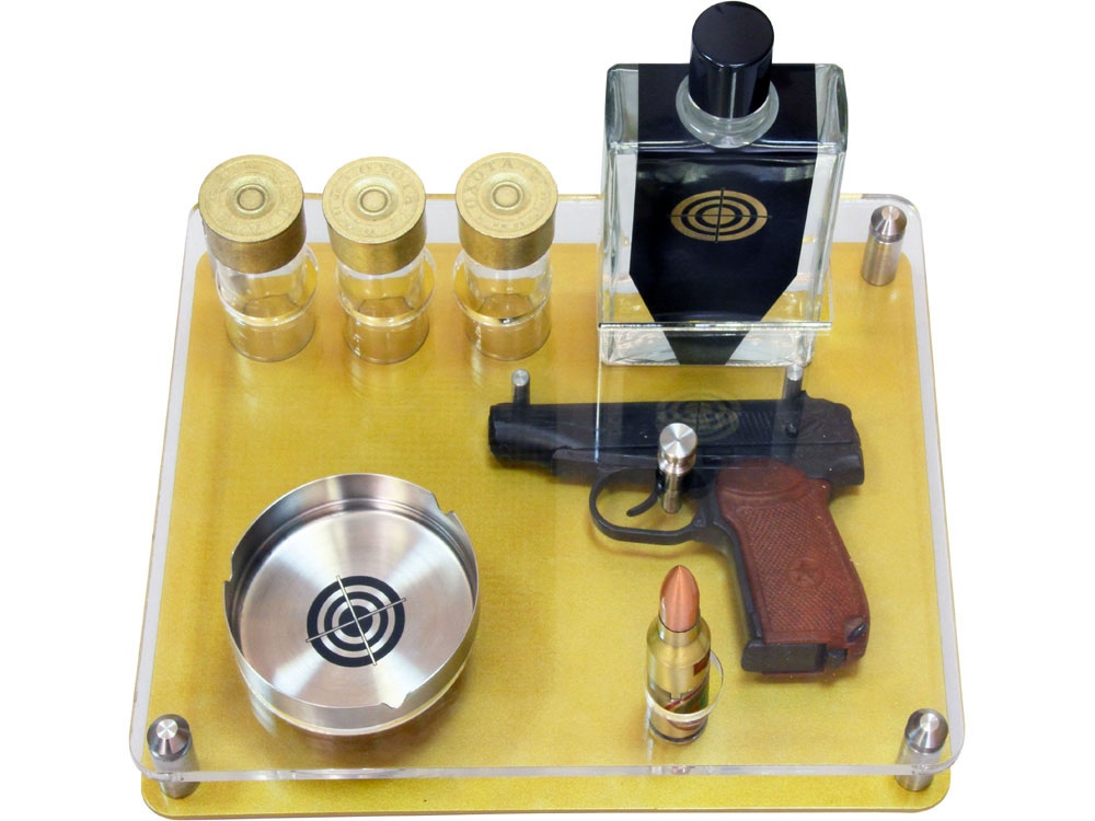 Что нужно настоящему мужчине для досуга с близкими друзьями? Штоф и стопки-патроны- это точно плюс. Пепельница в виде мишени и зажигалка в виде пули - это второй плюс. И, наконец, точная копия пистолета Макаров, где все по-настоящему: затвор передергивается, курок спускается... (Как известно, большинство мужчин в душе так и остается мальчишками) Поэтому пистолет будет для них третьим плюсом. Я бы этот набор так и назвал Три плюса для мужчин