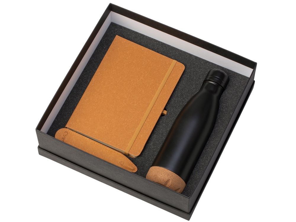 Набор из блокнота, ручки и бутылки для воды - идеальный вариант для подарка сотрудникам или клиентам.