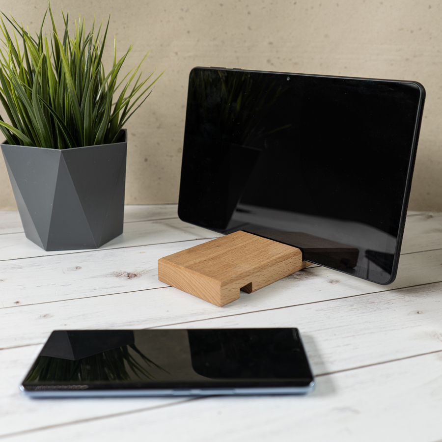 Подставка для смартфона, две разные выемки позволяют установить в держатель смартфон как в плотном бронечехле, так и без него, при этом смартфон будет хорошо зафиксирован, выполнен из премиум материала бук. Материал отличается следующими преимуществами: Прочность - премиум материал дерева Бук Безопасность - обладает противомикробными свойствами, не вызывает аллергических реакций Простой в уходе - моется теплой водой, допускается использование средств для мытья посуды Экологичность - натуральное и безопасное сырьеУдобство - устойчив на любых плоских поверхностях, включая диваны и кровати