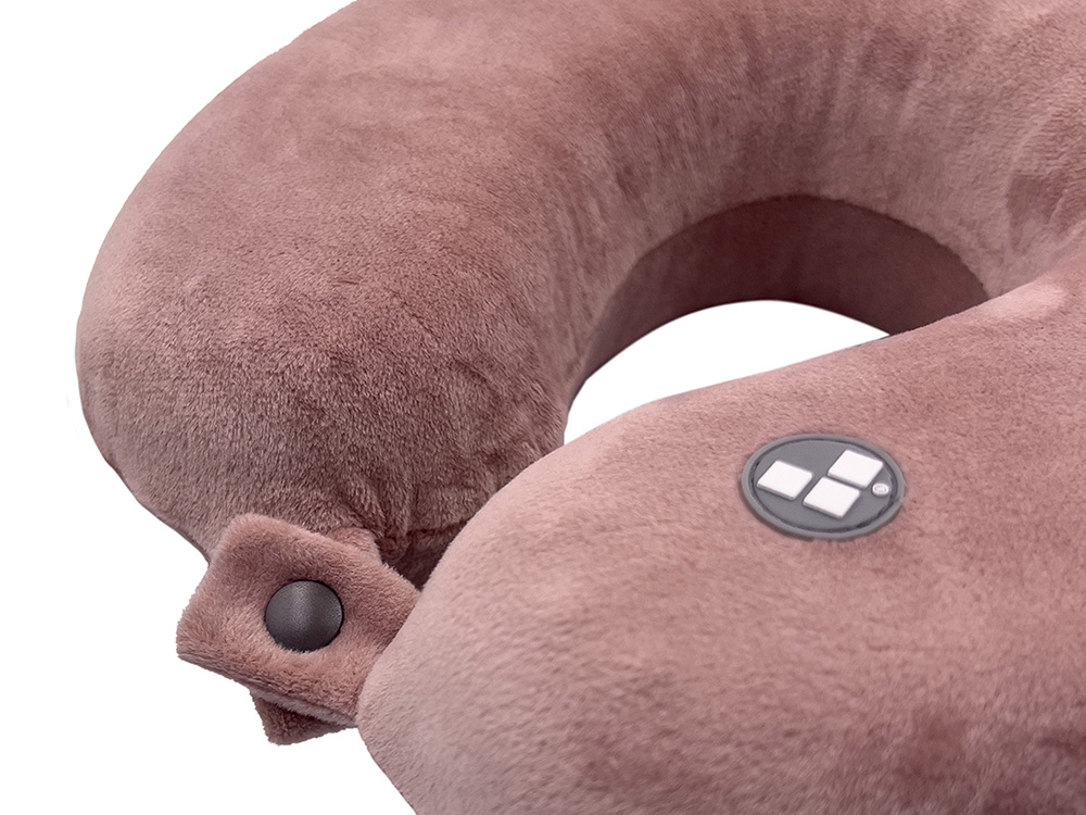 Удобная кнопочная застёжка надёжно фиксирует подушку на шее, а в комплект входит прочный круглый чехол на молнии — для компактного хранения и перевозки.