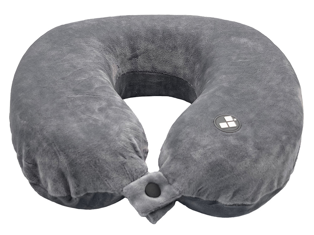 Удобная кнопочная застёжка надёжно фиксирует подушку на шее, а в комплект входит прочный круглый чехол на молнии — для компактного хранения и перевозки.