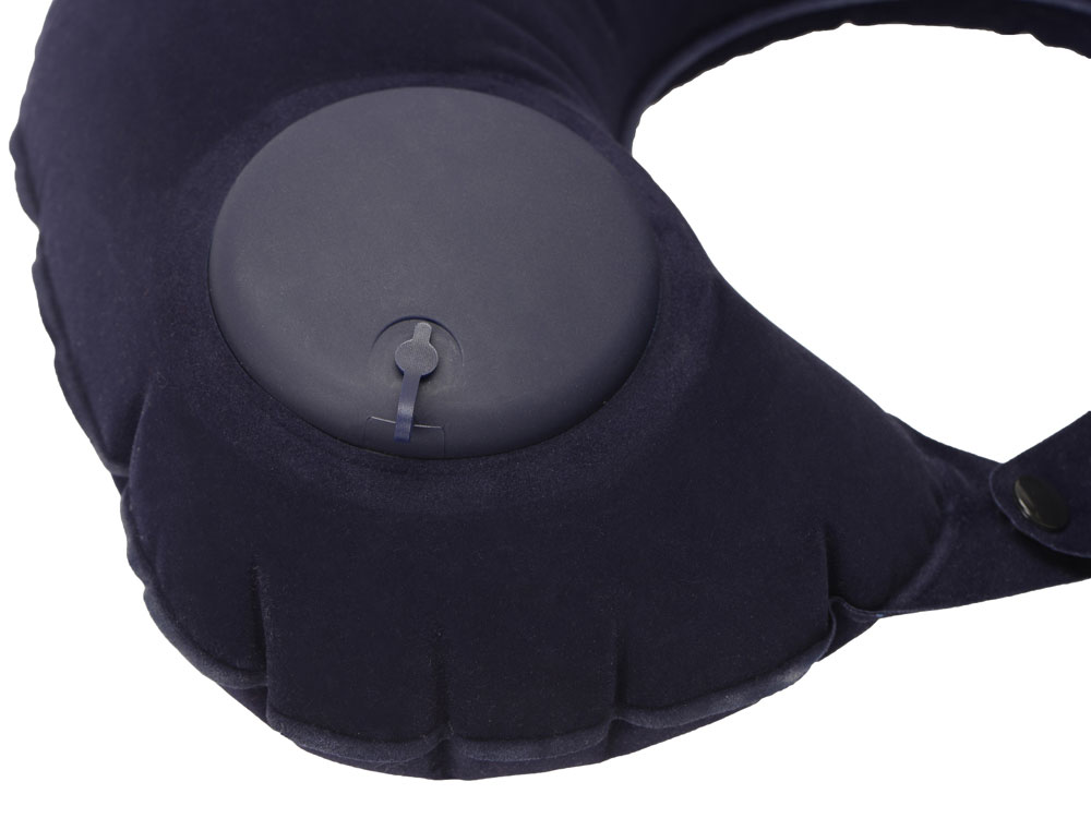 На обратной стороне от насоса-помпы находится клапан для сдувания воздуха из подушки. Двухуровневая фиксация кнопками позволит выбрать наиболее комфортное положение на шее. В комплекте идет чехол на завязках для хранения и удобной транспортировки.