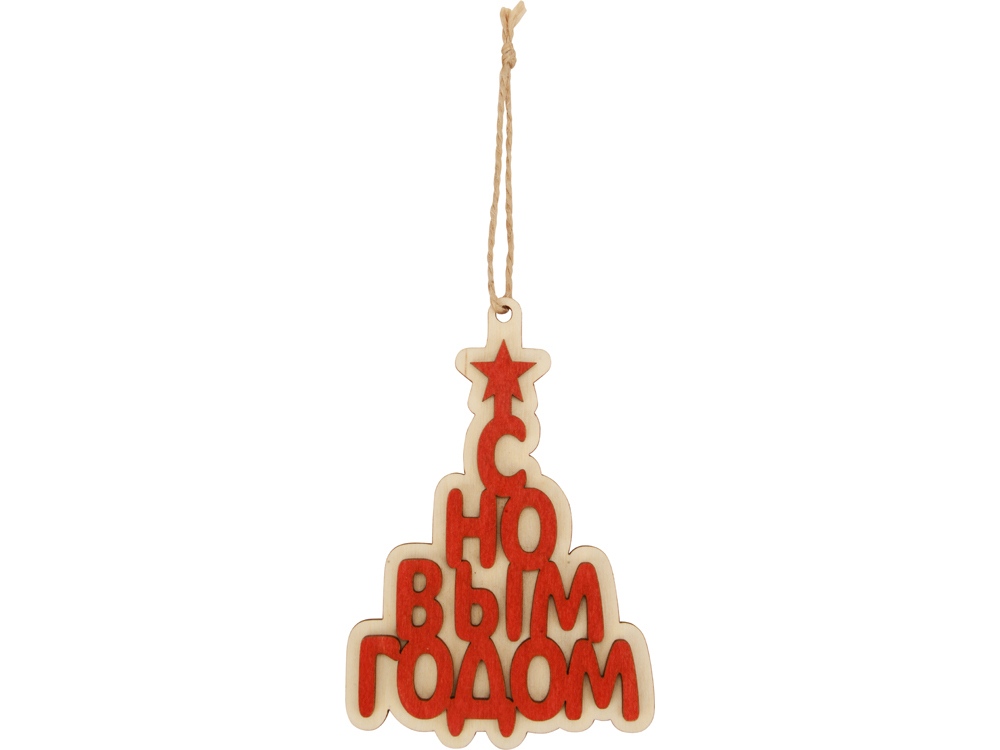 Оригинальное елочное украшение в виде поздравления С новым годом!. Подвеска выполнена из березовой фанеры и тонирована в красный цвет.