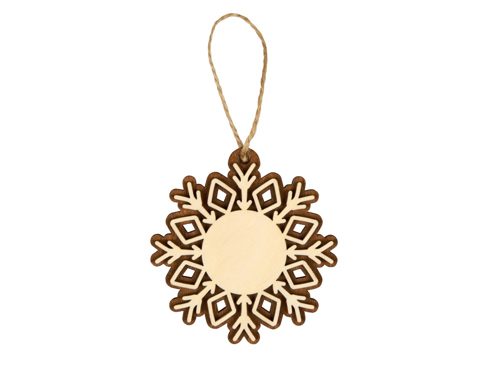 Оригинальное елочное украшение в виде снежинки. Подвеска выполнена из березовой фанеры и тонирована в коричневый цвет. Это елочное украшение – отличный вариант для экоелки. Не хотите использовать елочные игрушки из пластика или стекла? Деревянные сувениры из нашего каталога станут отличным украшением, которые создадут атмосферу уюта в вашем доме.