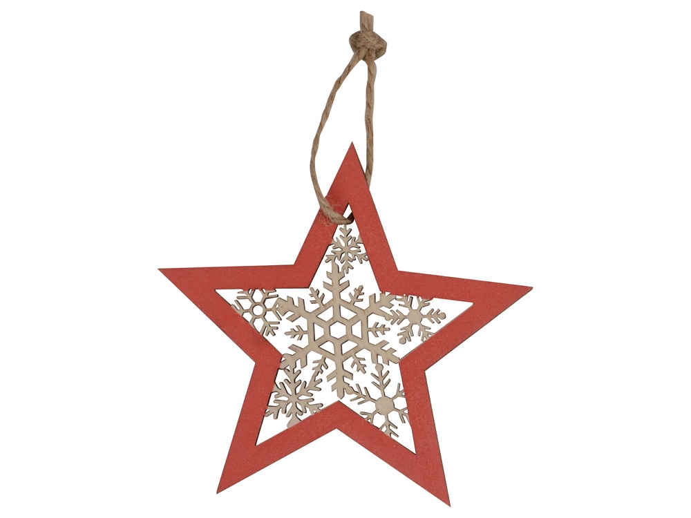 Оригинальное елочное украшение в виде звездочки. Подвеска выполнена из березовой фанеры и тонирована в красный цвет. Это елочное украшение – отличный вариант для экоелки. Не хотите использовать елочные игрушки из пластика или стекла? Деревянные сувениры из нашего каталога станут отличным украшением, которые создадут атмосферу уюта в вашем доме.