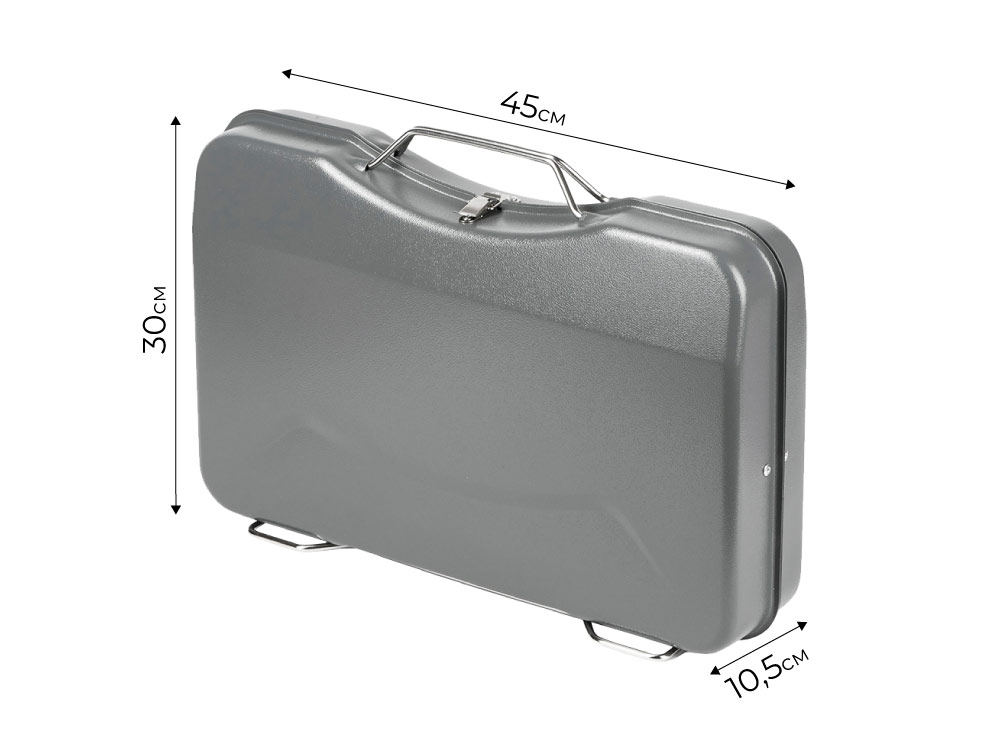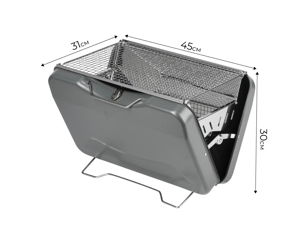 Портативный гриль встроен в компактный нержавеющий кейс, что позволяет переносить и использовать его на природе. Он не занимает много места, прост в использовании, легко раскладывается. В комплекте к грилю идет одна решетка гриль. С ним отдых на природе может быть не только приятным, но и спонтанным — просто положите кейс в багажник, чтобы всегда быть готовым к приключениям!