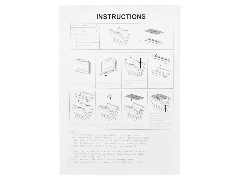Комплектность: гриль-чемодан, подставка для угля, решетка для гриля