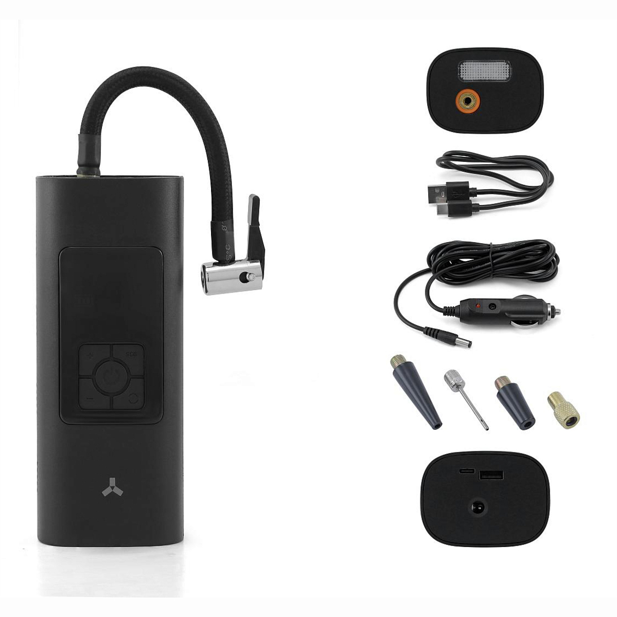 Комплектация: компрессор, набор универсальных адаптеров, сумка для хранения и переноски