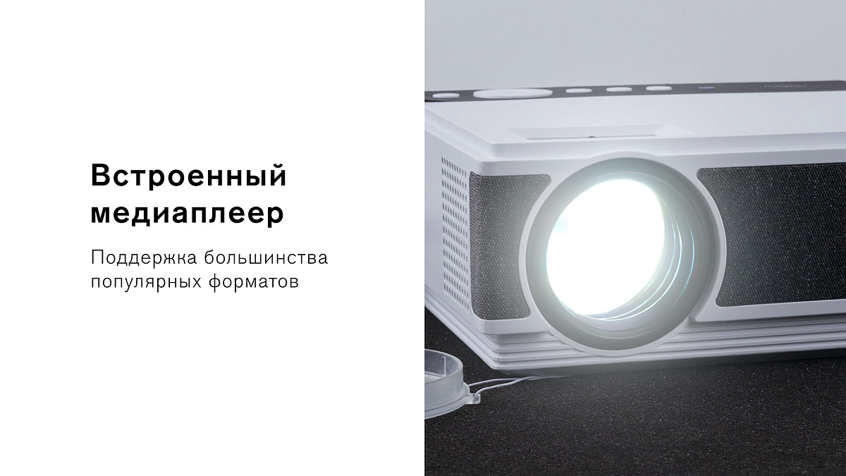 Особенности: собственное разрешение 1280х720 пикселей; яркость 2000 люмен, комфортная контрастность 2000:1; максимальное разрешение 1920х1080 пикселей; чтение microSD и USB – все популярные форматы файлов; поддержка субтитров SRT, SUB, SSA, SMI, IDX