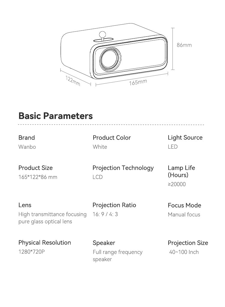 Особенности: ручная регулировка автофокуса; компактный, портативный и удобный для переноски проектор, специально разработанный для домашнего использования, игр и развлечений; встроенный динамик 3 Вт; ;