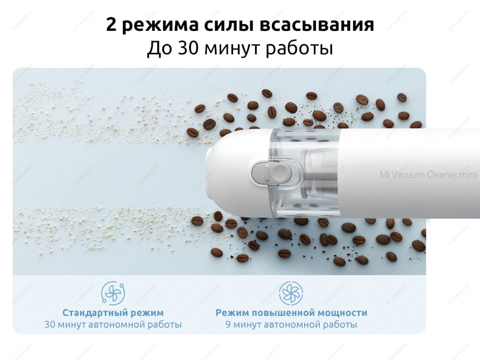 Особенности: HEPA-фильтр; сверхкомпактный размер; стандартный режим 30 минут автономной работы; режим повышенной мощности 9 минут автономной работы