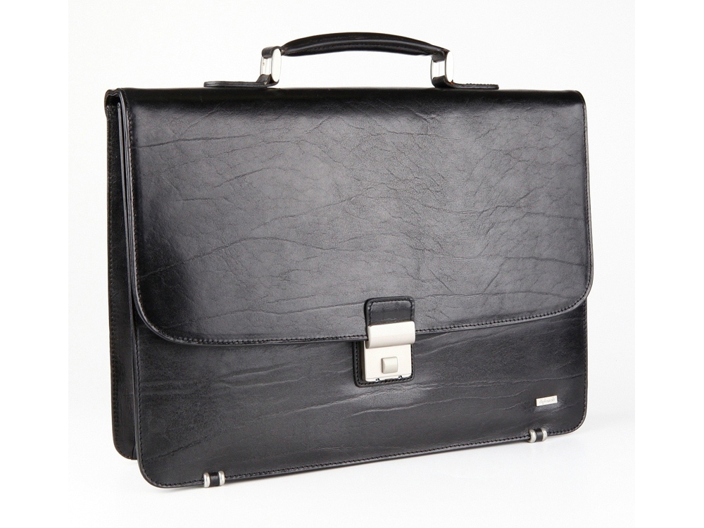 Элегантный женский портфель из качественной натуральной кожи черного цвета, овощной (vegetable) выделки. Портфель имеет основное отделение (для ноутбука до 13 дюймов и документов), одно отделение на молнии, кольцо для ключей, держатель для 3 ручек, 4 отделения для кредиток, отделение для телефона, что позволит аккуратно хранить и перевозить важные для ведения бизнеса документы. Удобная ручка для переноски, кодовый замок, металлические ножки. Без плечевого ремня.