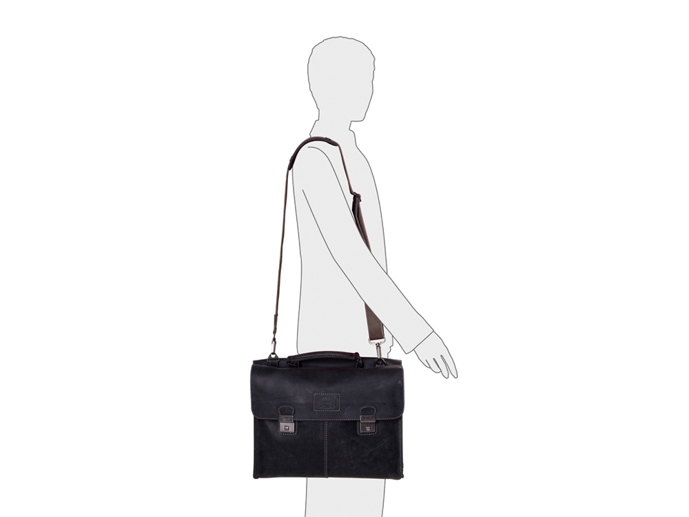 Портфель Native включает в себя съемный регулируемый ремень на плечо, со смягченной частью для плеча. Портфель имеет два больших отделения. Одно закрывается на две магнитные заклепки, включает в себя боковой карман на молнии, одно большое отделение и мягкое отделение для ноутбука или планшета размером 30 х 25 см. Второе закрывается на два портфельных замка, оснащенных кодом, включает в себя дно большое отделение, с двумя карманами для ручек, двумя дополнительными карманами для документов, шестью отделениями для кредитных карт или визиток, один карман на молнии, один боковой карман. Также имеет ручку, для ручной переноски.