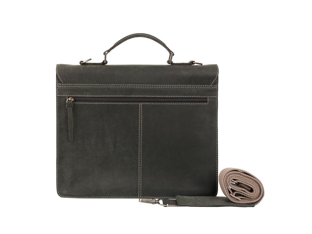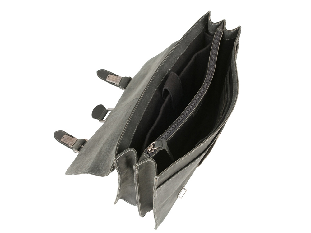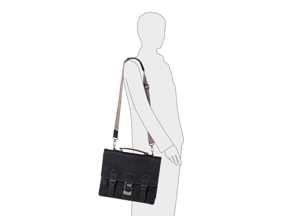 Портфель Native закрывается на два классических портфельных замка, стилизованные под ремни, включает в себя съемный регулируемый ремень на плечо, со смягченной частью, одно большое отделение, с двумя карманами для ручек, двумя дополнительными карманами для документов, шестью отделениями для кредитных карт или визиток, одно отделение на молнии, мягкое отделение для ноутбука или планшета размером 30 х 25 см, один внешний карман на молнии. Также сумка имеет ручку, для ручной переноски.