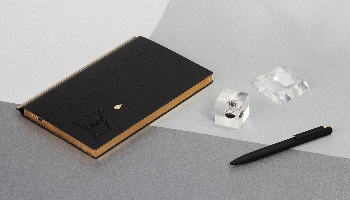 Пресс-папье с чёрной каплей нефти на прозрачной подставке. Съмное основание 5,2 х h 1,5 х 5,2 см, куб 3,2 х 3,2 х 3,2 см,