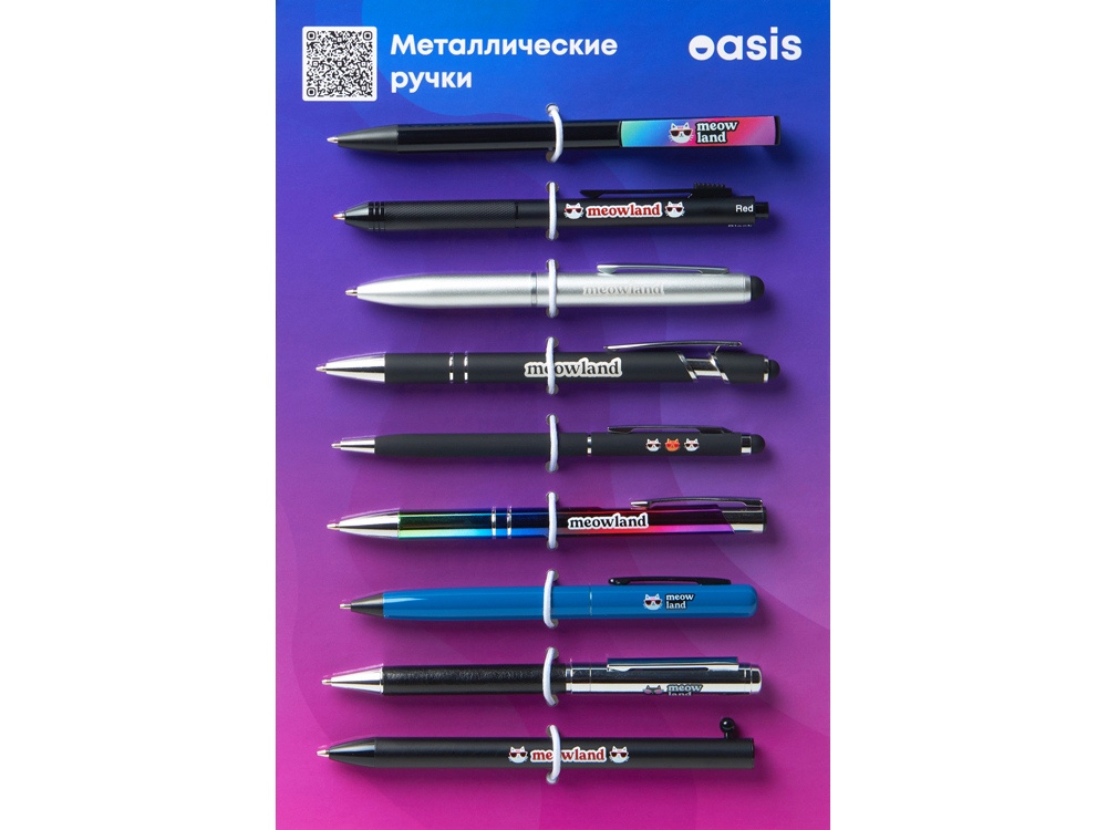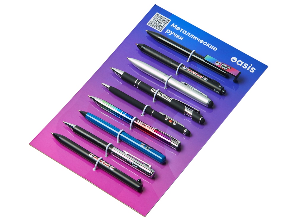 Промо-сет ручек — ваш готовый демонстрационный комплект, включающий 9 моделей металлических ручек с примерами нанесения: гравировка, тампопечать и УФ-печать. В сете представлены самые хитовые позиции категории металлических ручек, а также новинки каталога периода зима-весна 2025 года. Образцы аккуратно закреплены на дизайнерской картонной подложке с резиновым фиксатором. А на обратной стороне указаны названия моделей с кратким описанием. Промо-набор — идеальный инструмент для презентаций: клиенты могут подержать ручки в руках, опробовать их в деле и наглядно увидеть различия между видами нанесения. При этом все самые важные модели собраны в одном легком и компактном наборе.