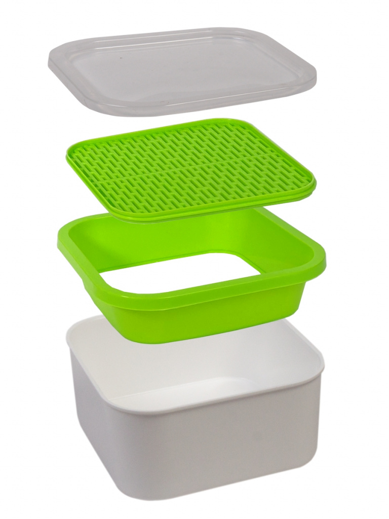 Микрозелень – молодые растения в фазе пары первых листьев, содержащие максимальную концентрацию полезных веществ. Растет на чистой воде за счет использования внутренних ресурсов семян. Комплектация набора: - крышка, - корзинка, - сменное дно (установленное в позицию для проращивания микрозелени), - емкость для жидкости. Проращиватель подходит как для крупных семян, так и для самых мелких. Для выращивания микрозелени установите сменное дно широкими бороздами вверх. Для проростков - широкими бороздами вниз. Как вырастить микрозелень: