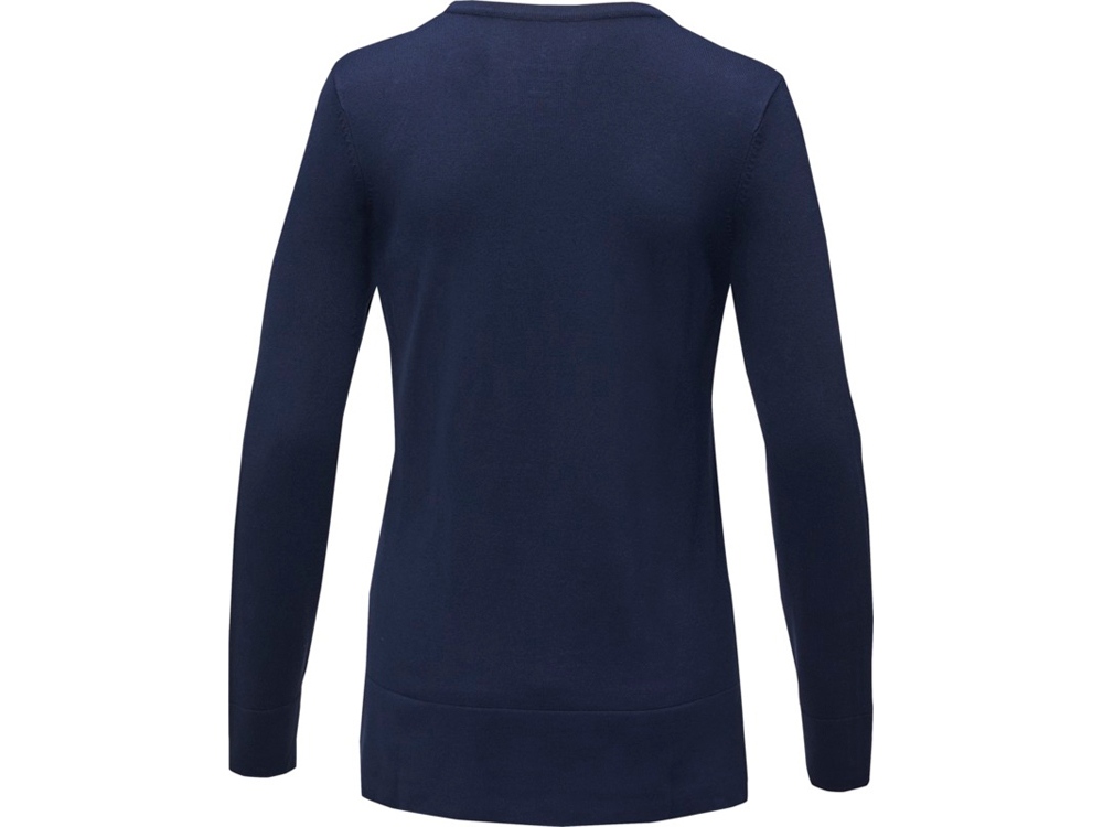 Женский пуловер Stanton. V-образный вырез. Воротник из гладкого трикотажа. С манжетами из гладкого трикотажа в рубчик. С подшивкой из гладкого трикотажа в рубчик. Удлиненный задний подол с боковыми прорезями. Атласная лента на воротнике Основная этикетка нанесена на ткань методом термоприклеивания без неудобных пришитых ярлыков. Придающие форму швы и зауженная талия для ровного прилегания.
