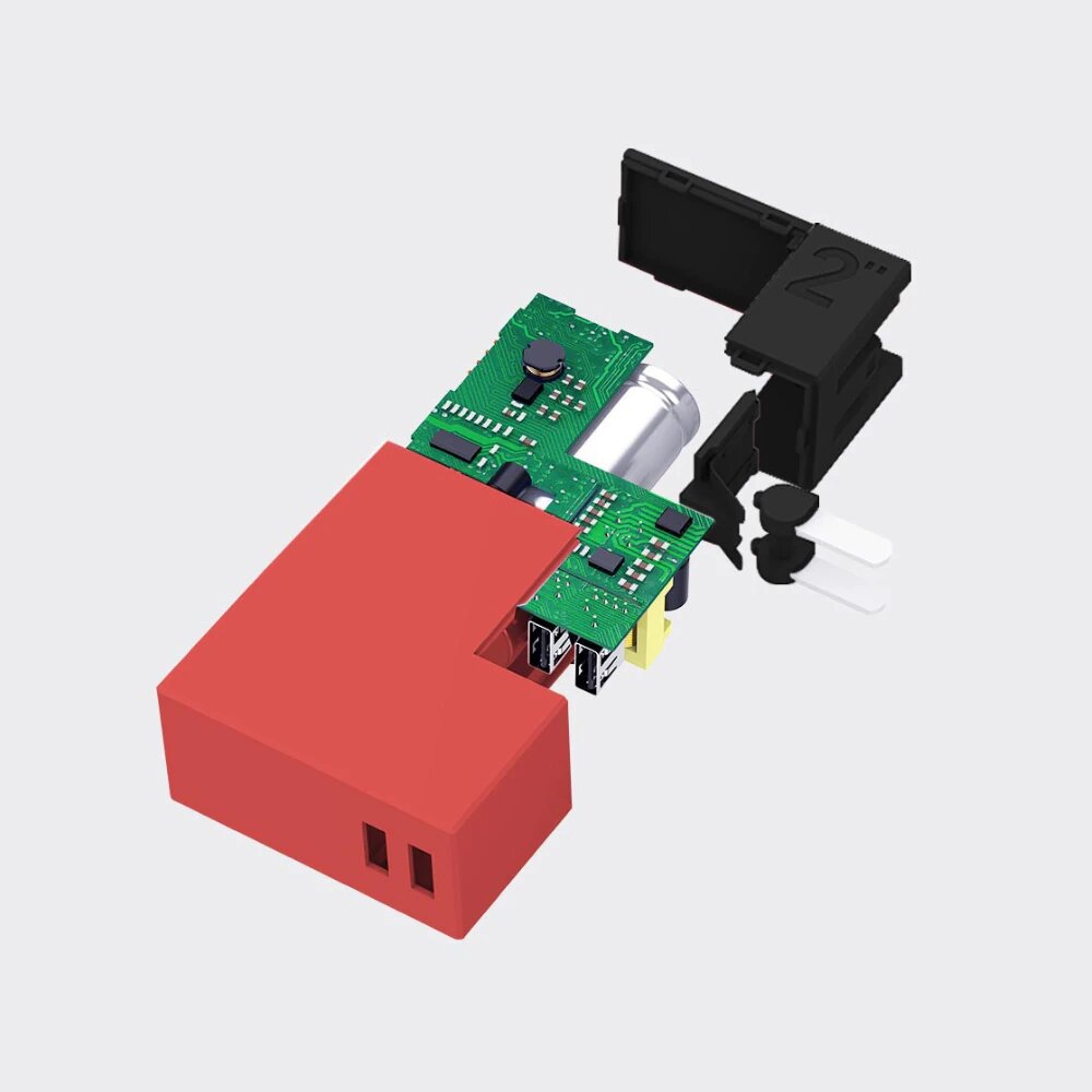 Комплектация: зарядное устройство, вилка типа B и C, мешочек для переноски