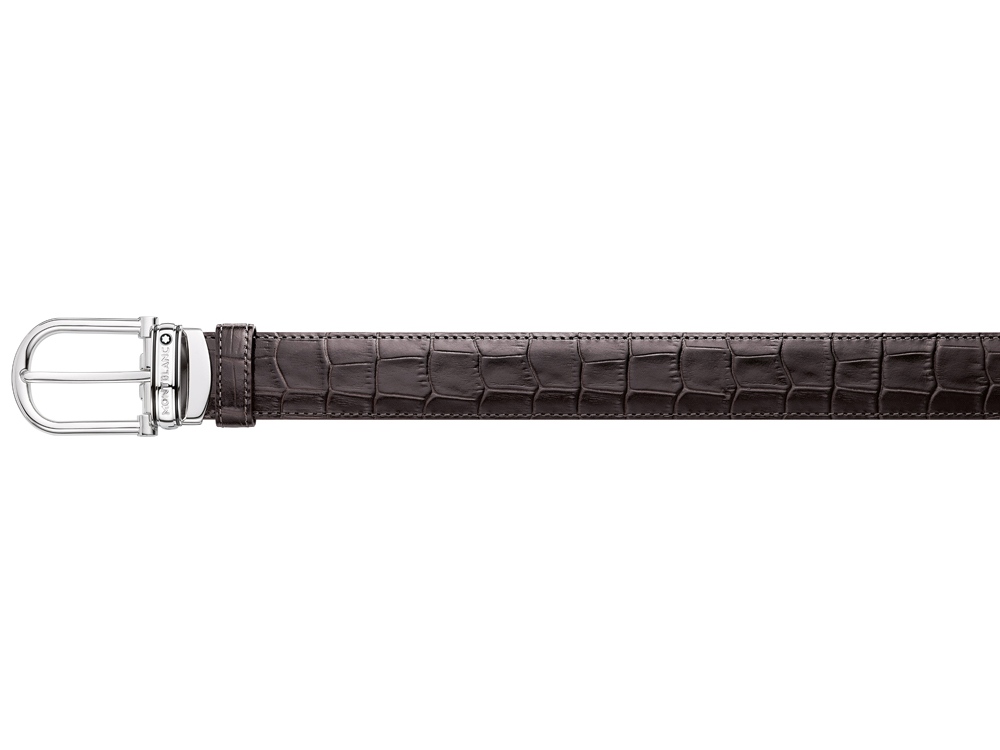 Замечательный ремень из натуральной кожи высокого качества станет отличным подарком для успешных людей. Ремень обладает интересной отделкой под крокодилью кожу. Застежка из серебристого металла задекорирована наименованием бренда.