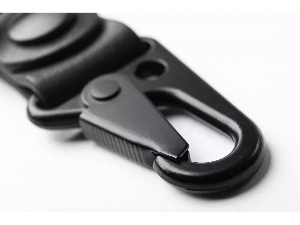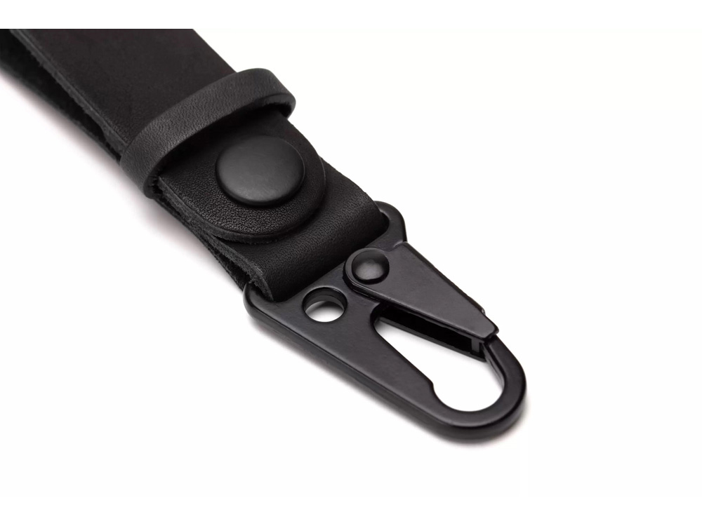 Ремешок сшит из прочной кожи чёрного цвета. Оборудован надёжным металлическим карабином, самопроизвольное расцепление которого невозможно. Ключи, прицепленные к нему, обречены вечно храниться в глубинах сумки или кармана джинсов, и у них нет ни единого шанса потеряться. Прицепить ремешок можно к шлёвке джинсов или к куртке.
