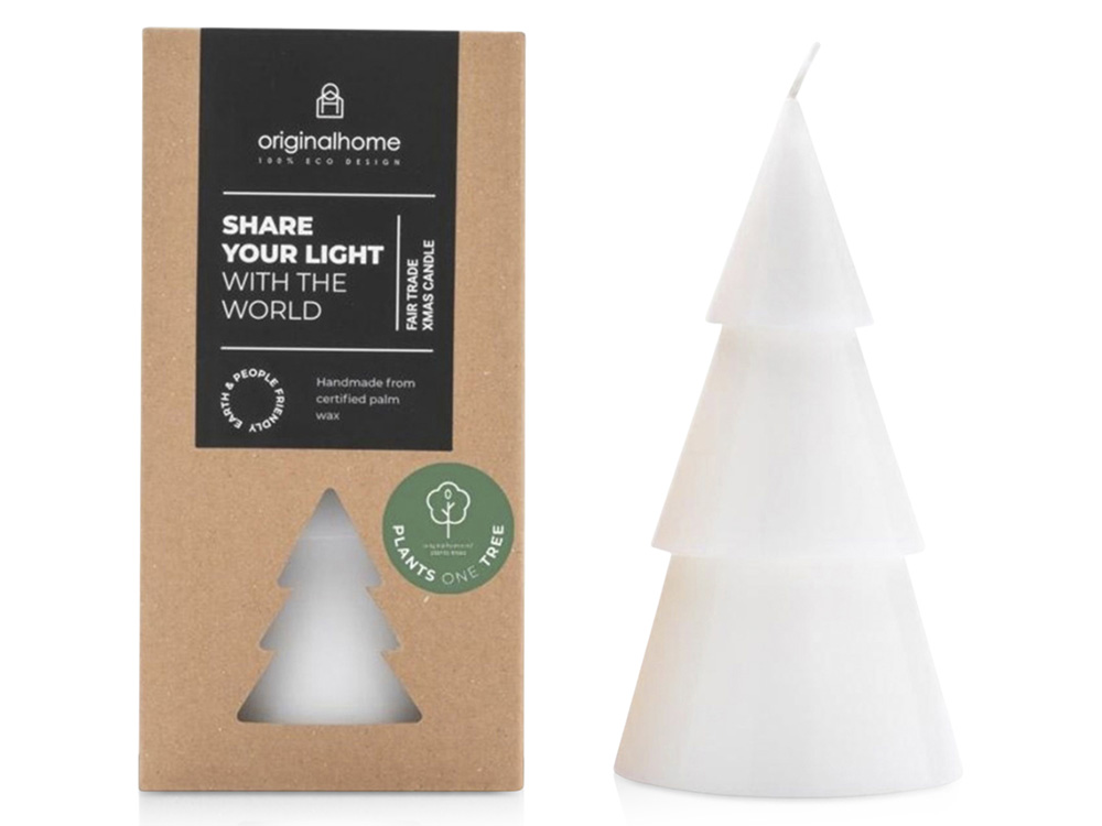 Большая свеча без запаха в виде елки от Originalhome на 100% натуральная и изготовлена вручную из сертифицированного пальмового воска. Это идеальный рождественский подарок для всех, с кем хочется поделиться светом и теплом. Свеча горит примерно 29-32 часа. Воск из пальмовых ядер.