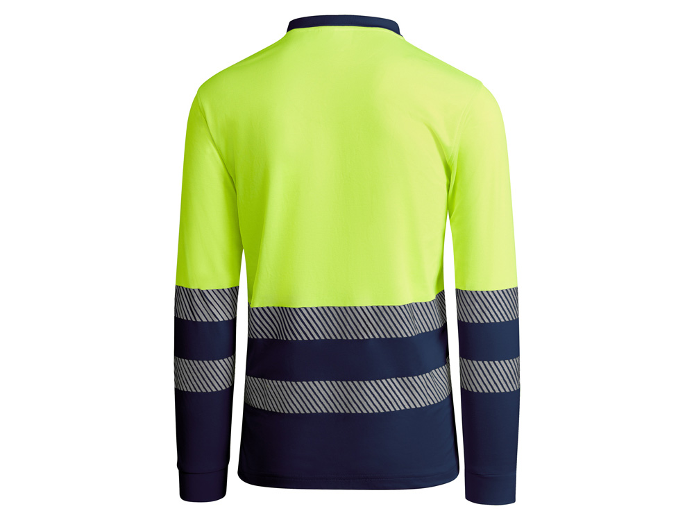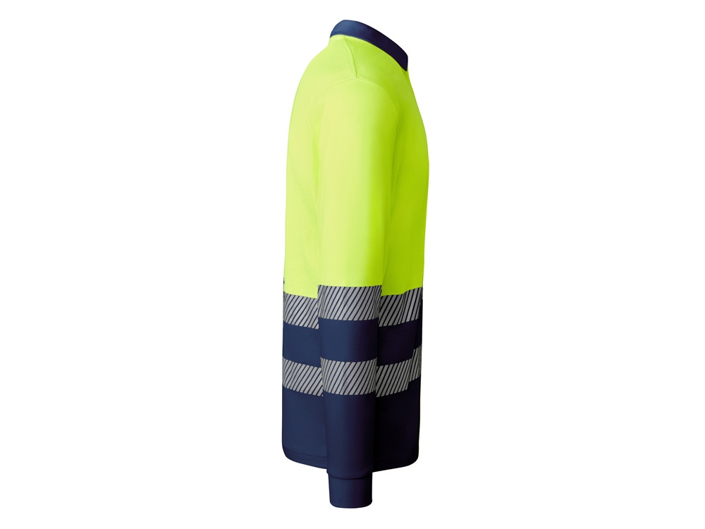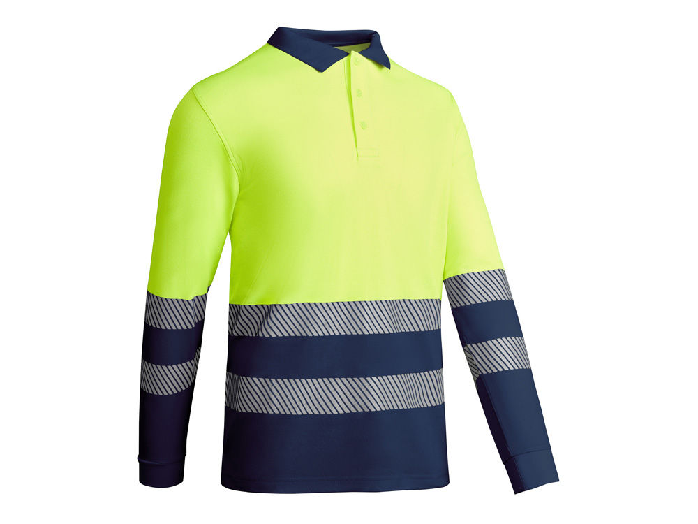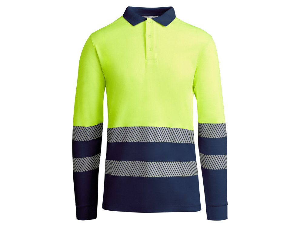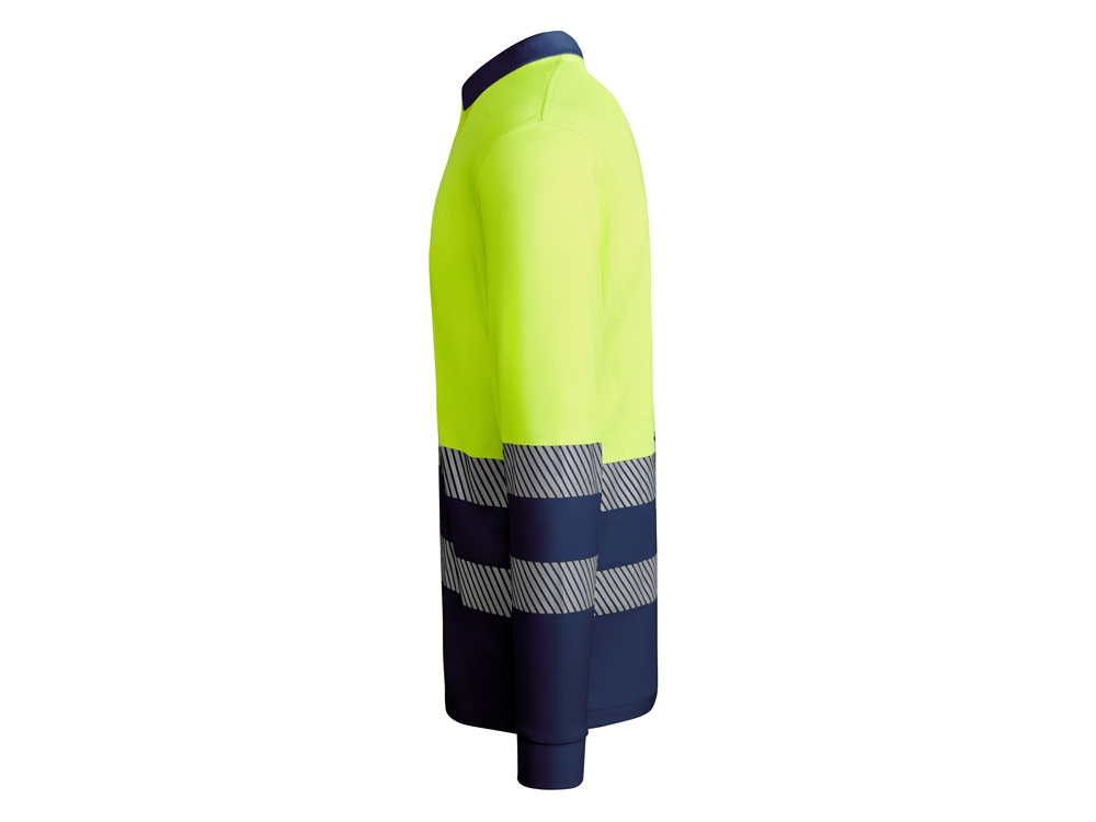 Рубашка поло с длинным рукавом и воротником в рубчик 1x1. Планка с застежкой на 3 пуговицы. Две светоотражающие сегментированные полосы на груди и рукавах. Микс полиэстера и хлопка для повышенной воздухопроницаемости. Дополнительный карман.