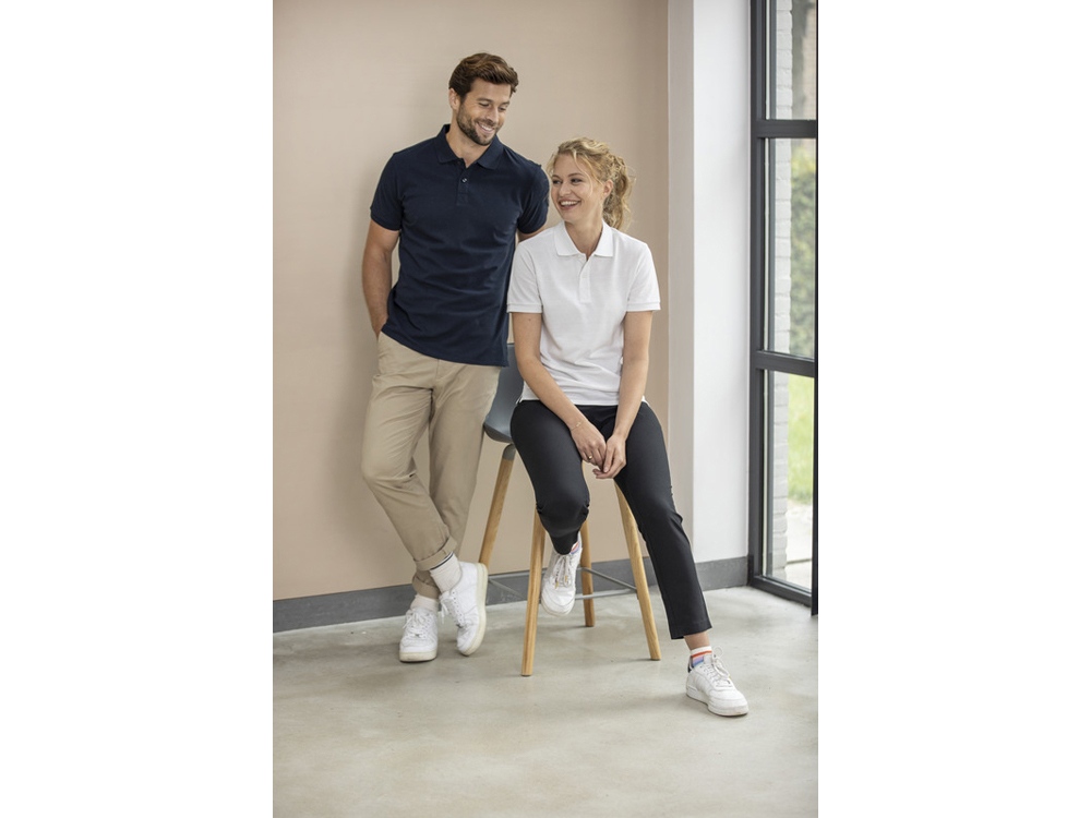 Данное поло обеспечивает комфорт и долговечность, дополненное манжетами в рубчик 1x1 на концах рукавов. Поло также имеет сертифицированные GRS пуговицы, что еще больше снижает воздействие на окружающую среду. Эта футболка-поло с боковыми разрезами для удобства движений отличается функциональностью. Изготовлена из трикотажа пике плотностью 200 г/м² из переработанного хлопка с добавлением переработанного полиэстера.