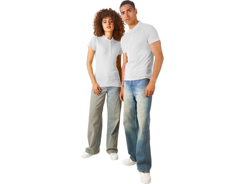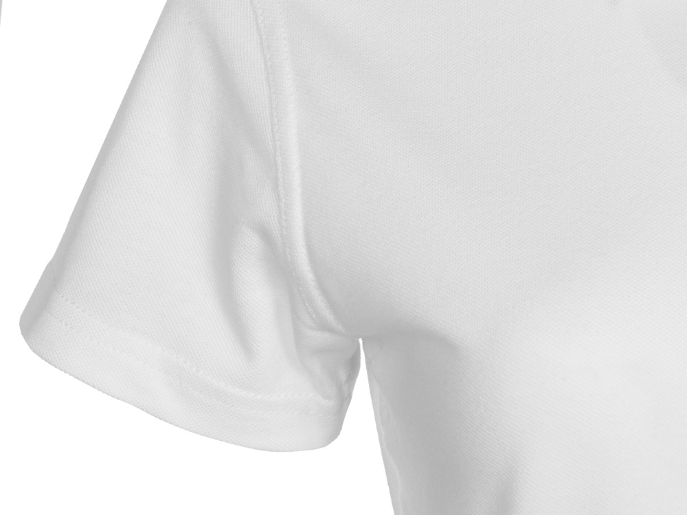 Женская рубашка-поло First. Воротник 1х1. Обшивка внутри воротника. Мужская и детская модели с 2 пуговицами, женская - с 4 пуговицами. Пуговицы с гравировкой в тон. Пике, 100% хлопок. 160 г/м2.