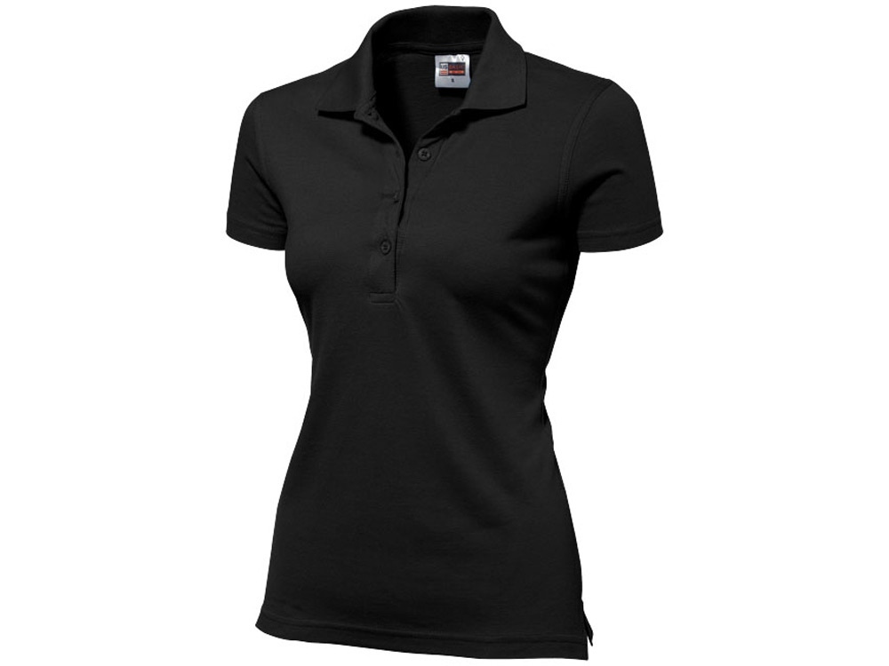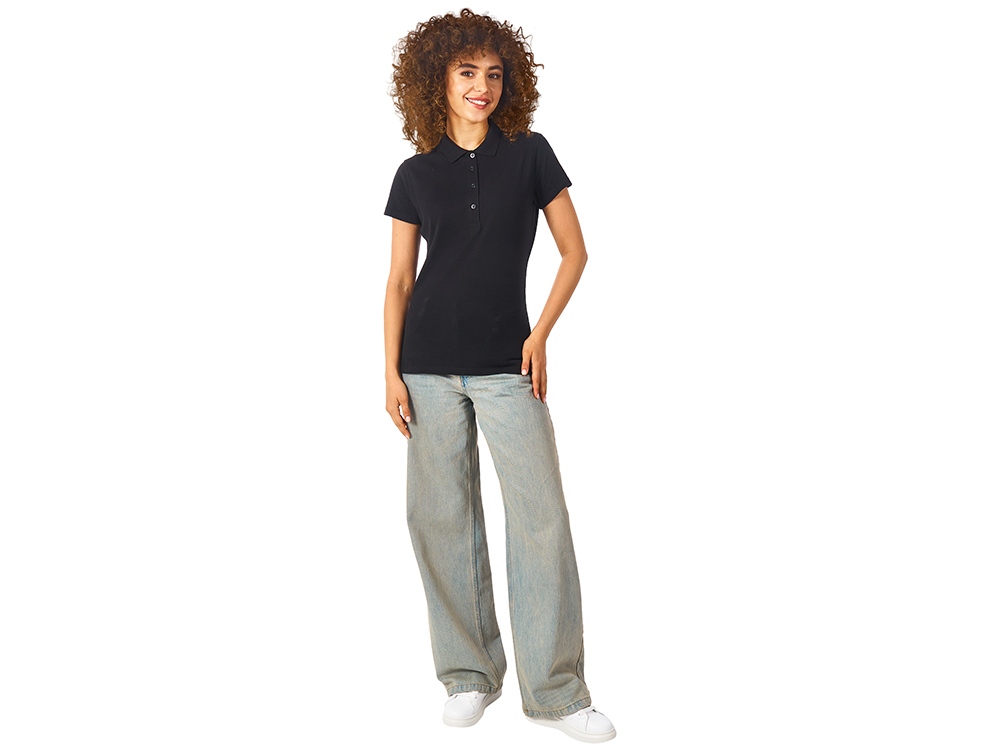 Женская рубашка-поло First. Воротник 1х1. Обшивка внутри воротника. Мужская и детская модели с 2 пуговицами, женская - с 4 пуговицами. Пуговицы с гравировкой в тон. Пике, 100% хлопок. 160 г/м2.