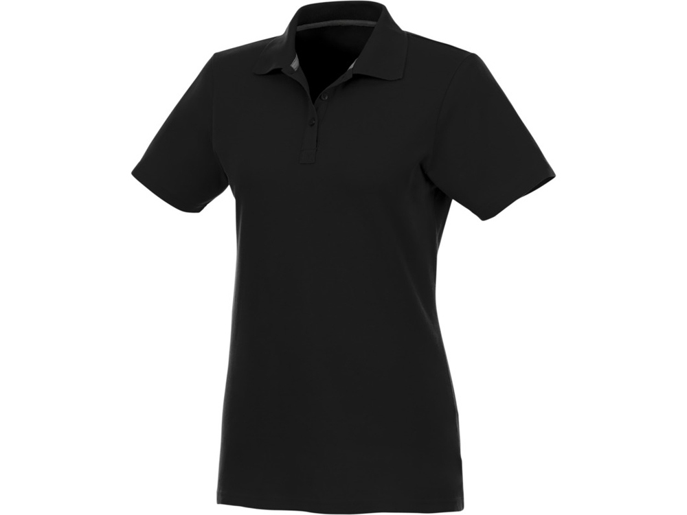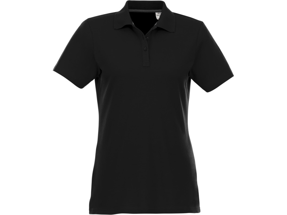 Женское поло Helios с коротким рукавом. Женская модель с разрезами по бокам. Отрезной-отрывной ярлык для комфорта. Воротник гладкой вязкой в рубчик. Планка с тремя пуговицами. Двойная строчка на воротнике и внизу изделия. Пуговицы в цвет изделия. Полоска на горловине в контрастном цвете. Трикотаж Piqué, 100 % хлопок. 180 г/м².