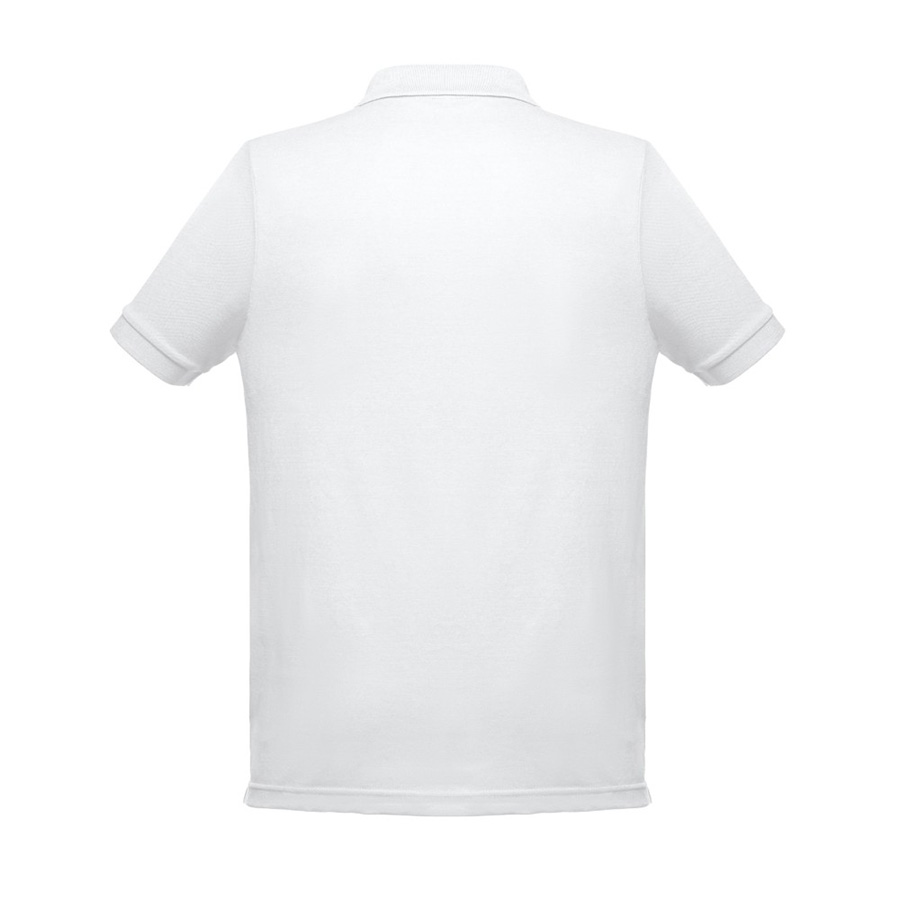 Мужская рубашка-поло из смесовой ткани-пике. Полотно футболки упругое и гладкое благодаря обработке ферментами "enzyme wash" и сохраняет форму при стирке. Модель полуприлегающего силуэта. Благодаря манжете из риба 1х1 рукав смотрится очень аккуратно. Воротник также выполнен из риба 1х1, внутри ворота - укрепляющая тесьма по горловине. Планка с 3 пуговицами в тон изделия. запасная пуговица на ярлыке во внутреннем боковом шве.