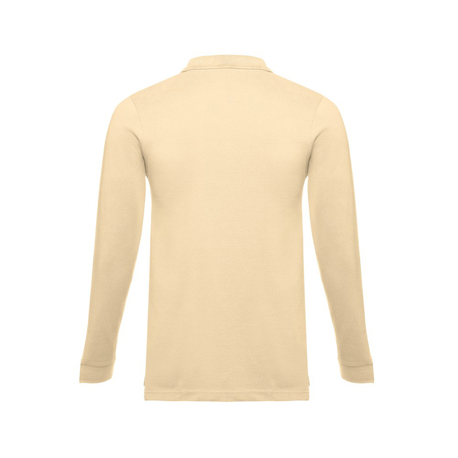 Мужская рубашка-поло с длинным рукавом из хлопковой ткани-пике. Полотно футболки упругое и гладкое благодаря обработке ферментами "enzyme wash" и сохраняет форму при стирке. Модель полуприлегающего силуэта. Благодаря манжете из риба 1х1 рукав смотрится очень аккуратно. Воротник также выполнен из риба 1х1, внутри ворота - укрепляющая тесьма по горловине. Планка с 3 пуговицами в цвет основной ткани изделия. Запасная пуговица на ярлыке во внутреннем боковом шве.
