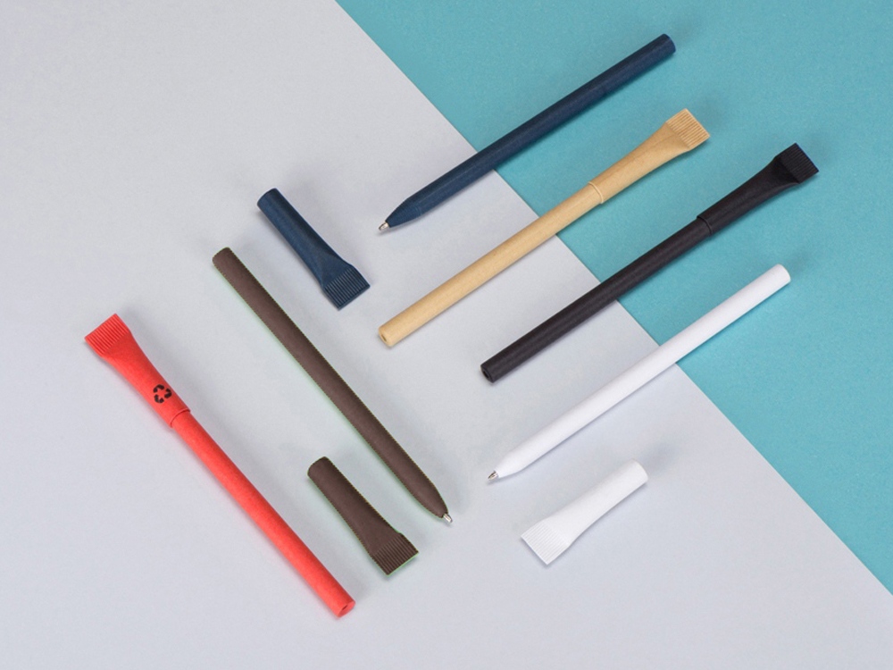 Ручка с корпусом из переработанной бумаги. Оригинальный дизайн, приятная на ощупь поверхность. Переработанная бумага позволяет легко делать нанесение как на теле ручки, так и на колпачке.