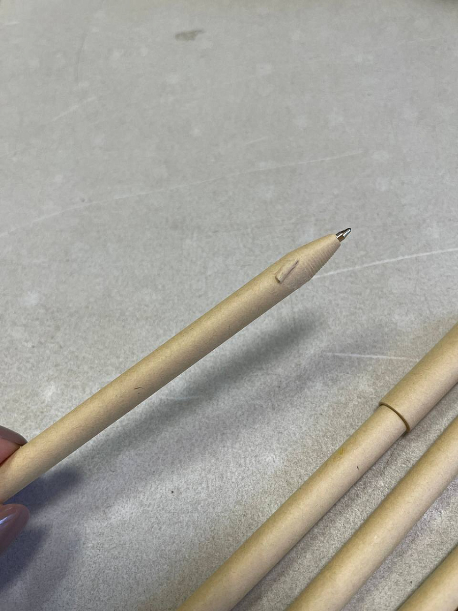 Ручка с корпусом из бумаги. Оригинальный дизайн, приятная на ощупь поверхность. Бумага позволяет легко делать нанесение как на теле ручки, так и на колпачке.