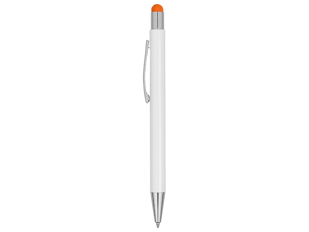 Металлическая шариковая ручка-стилус с нажимным механизмом. Под лакированным белым покрытием корпуса скрыт цветной зеркальный слой, раскрываемый в процессе гравировки. Зеркальный слой и стилус выполнены в едином цвете.