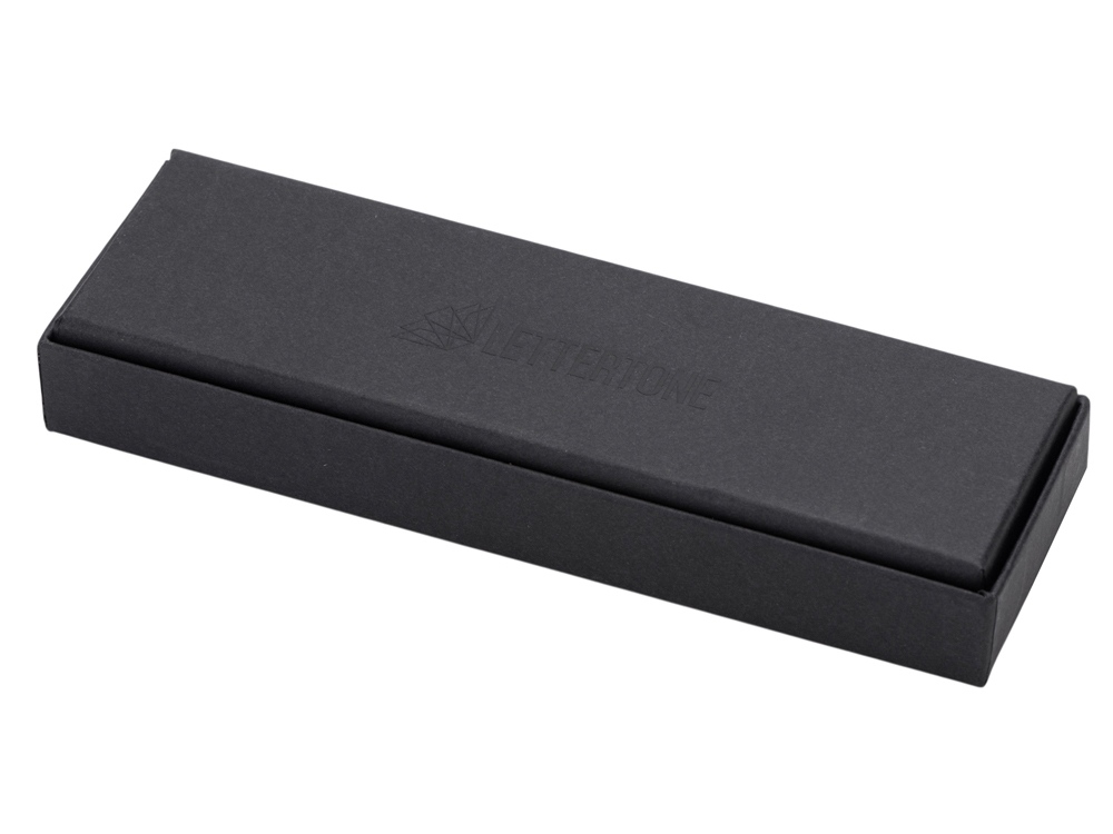 Ручка упакована в чёрный матовый футляр с логотипом бренда Lettertone на дне.