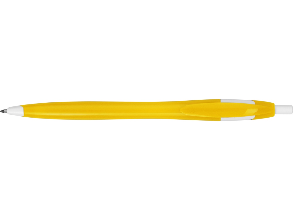 Простая, но стильная пластиковая ручка с цветным корпусом и белыми вставками на носике, кнопке и под клипом. Белые вставки делают ручку более заметной, не отвлекая от рекламной информации на ее корпусе.