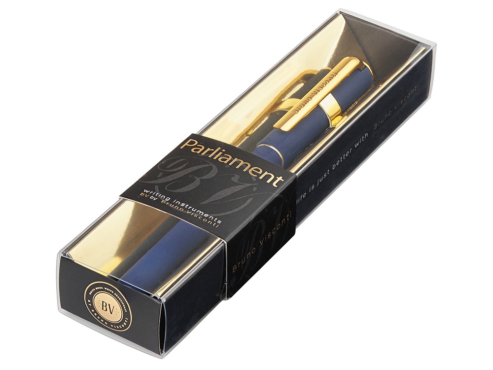Ручка Parliament с чернилами на масляной основе синего цвета отличается мягким письмом и толщиной линии 0,5 мм. Ее прорезиненный корпус soft-touch обеспечивает комфорт при длительном использовании, а отвинчивающийся наконечник облегчает доступ к сменному стержню. Колпачок с клип-зажимом обеспечивает удобное крепление ручки на одежде или сумке. Качество письма обеспечивается премиальным швейцарским пишущим узлом диаметром 0,7 мм от производителя Premec и немецкими чернилами марки Dokumental. Ручка упакована в индивидуальную подарочную упаковку.