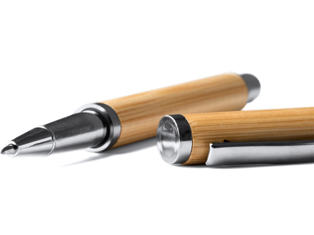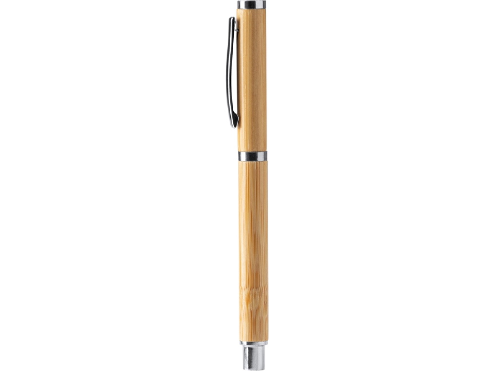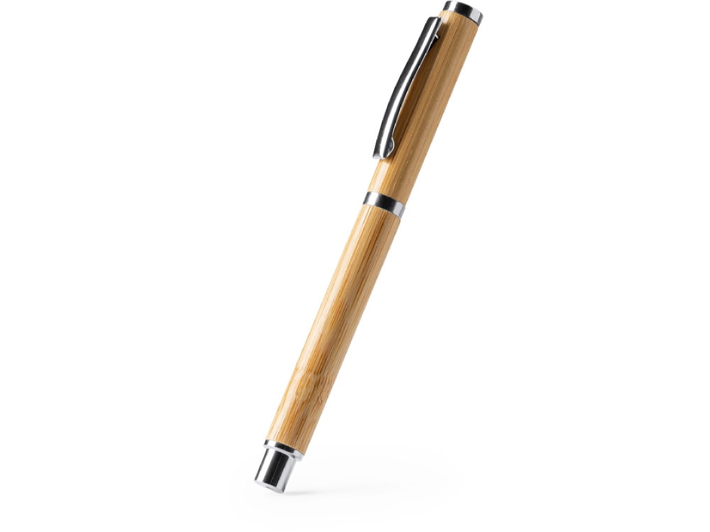 Ручка-роллер с корпусом из бамбука и металлическими деталями. Синие чернила