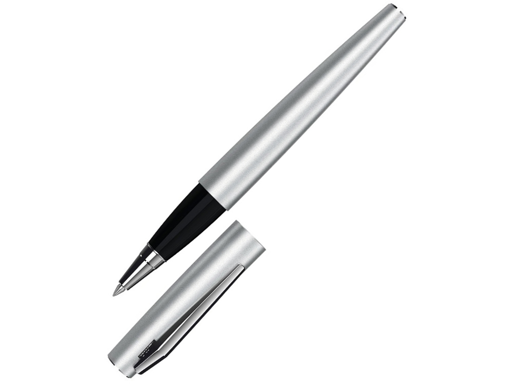 Металлическая ручка роллер с матовым лакированным покрытием. Металлический клип, наконечник и колпачок с глянцевой хромированной отделкой.