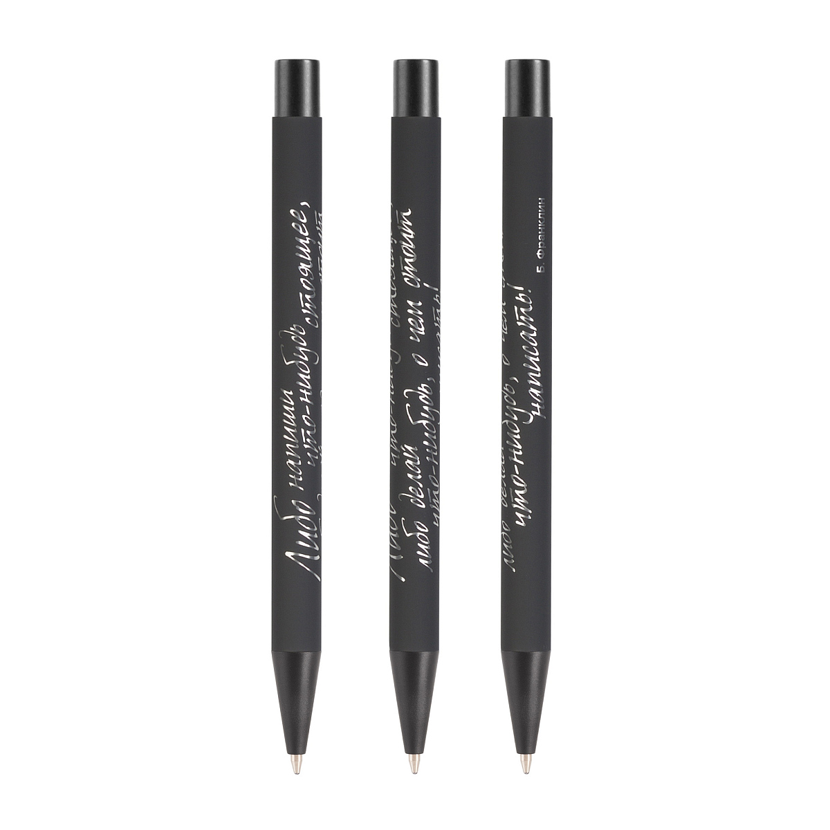 Уникальный дизайн - ручка без клипа. Стиль - Total Black. Возможна круговая гравировка (полные 360°) всего корпуса ручки – это позволяет нанести максимальное количество информации. При размещении логотипа отсутствует необходимость позиционировать его относительно клипа – процесс нанесения становится проще и быстрее.